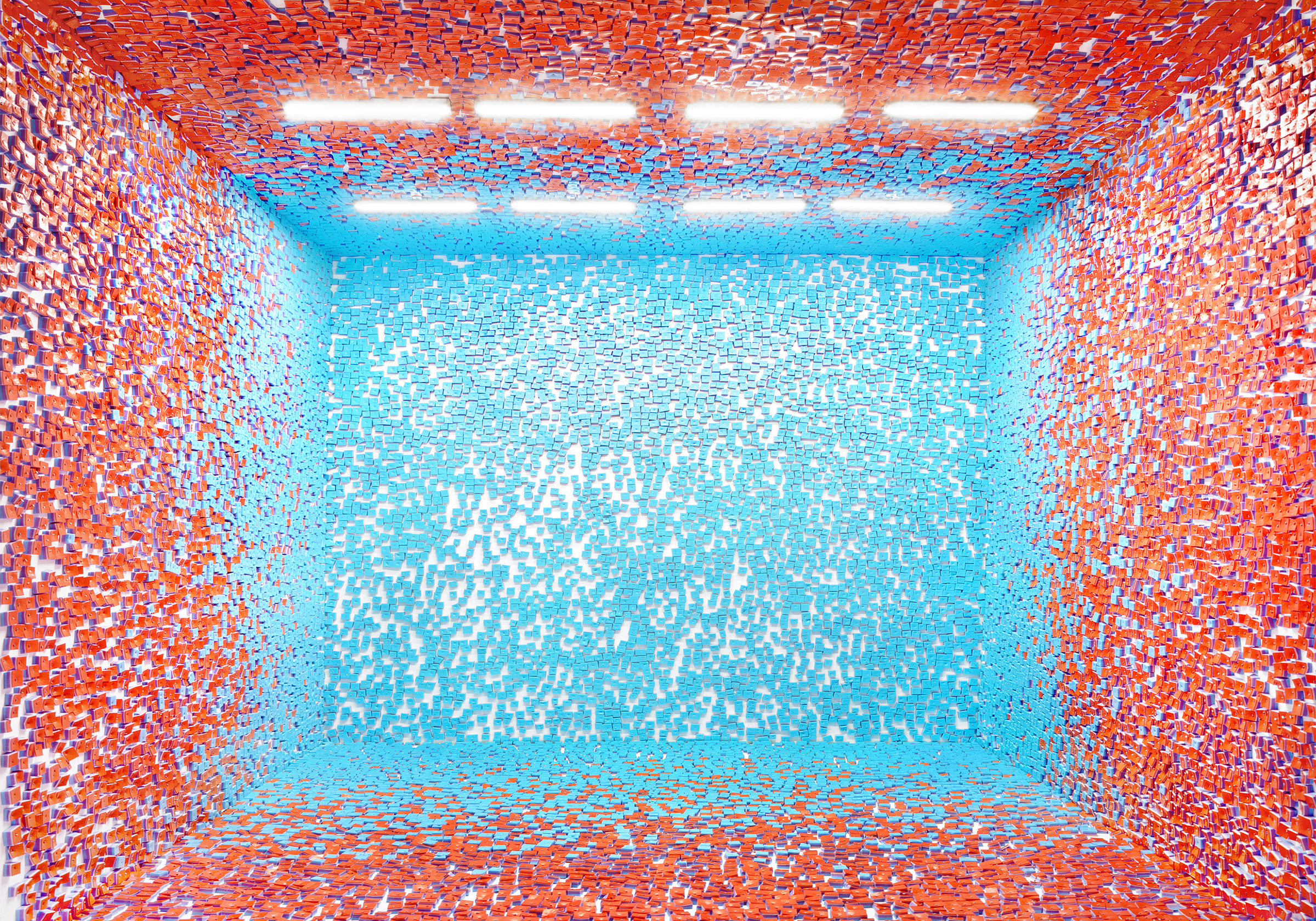 2020. Ultrachrome print with cut up pieces of gym floor, framed with museum glass. 120.0 x 172.0 cm. Edition of 5
