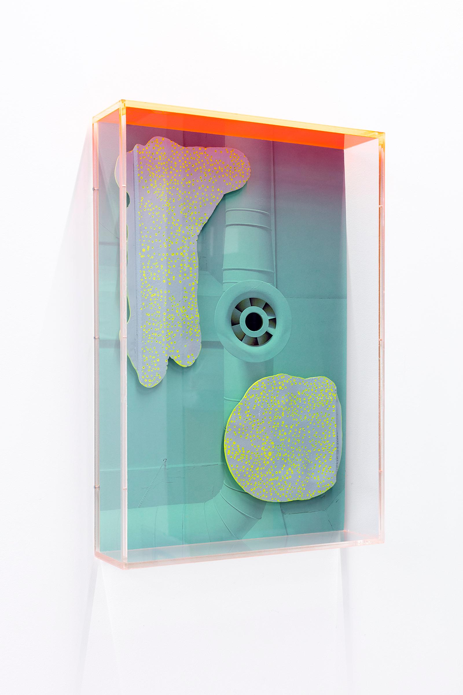 2025. Ultrachromeprints, plaster, false ceiling, and wood in plexiglass container. 61.0 x 42.0 x 9.0 cm