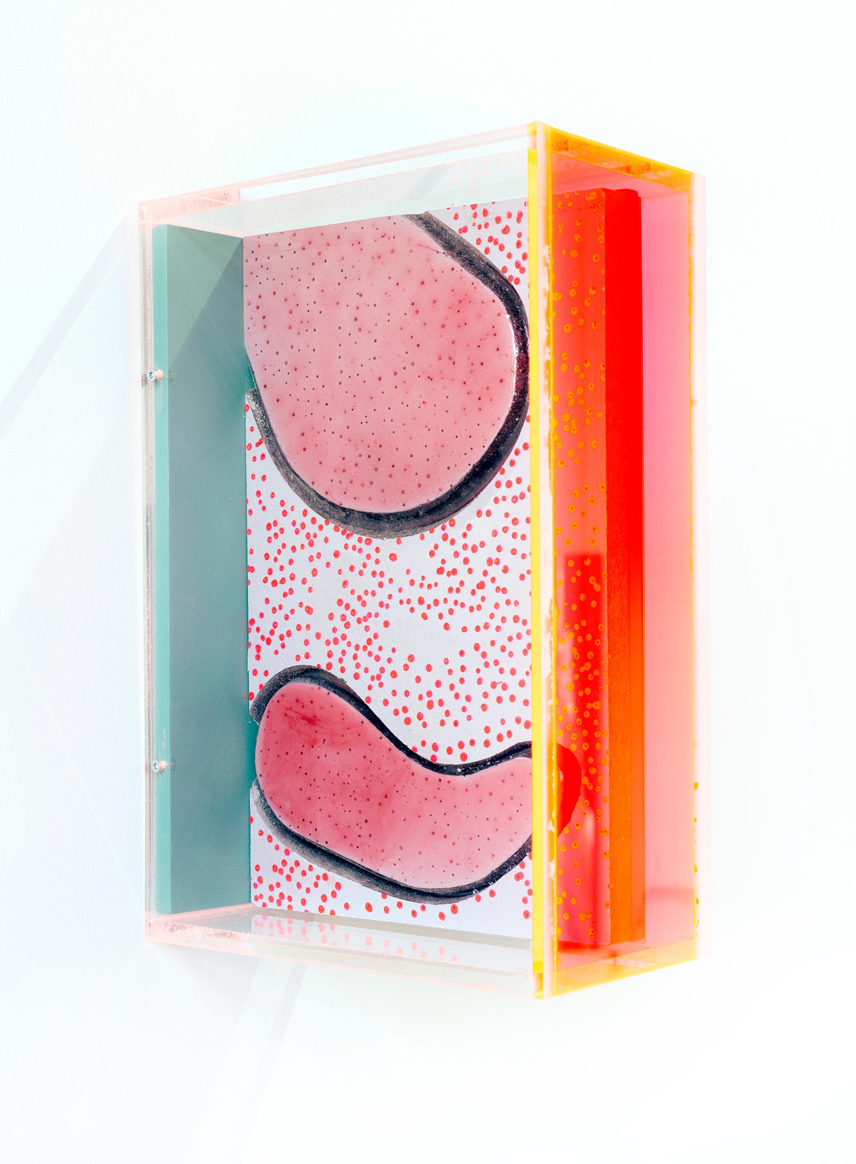 2025. Ultrachromeprint, epoxy resin, tin, false ceiling and wood in plexiglass container. 31.0 x 21.0 x 11.0 cm
