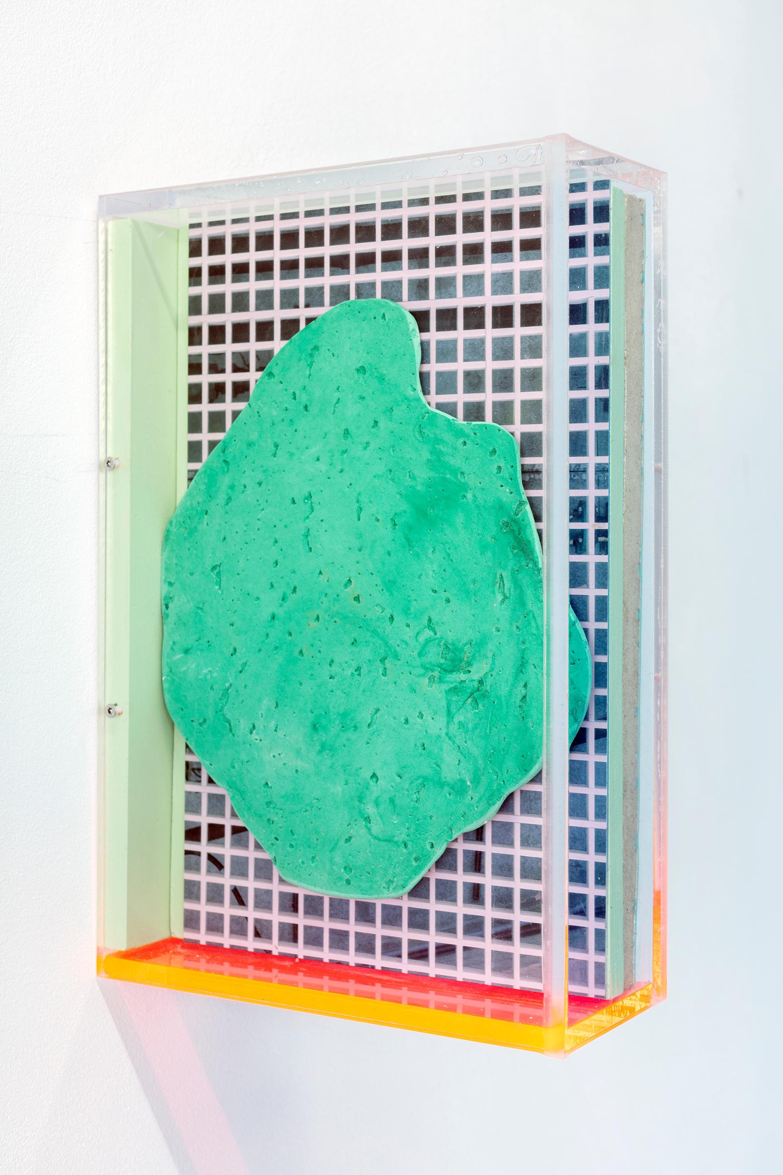 2023. Ultrachromeprints, plaster, silicon rubber, false ceiling and, wood in plexiglass container. 31.0 x 21.0 x 9.0 cm