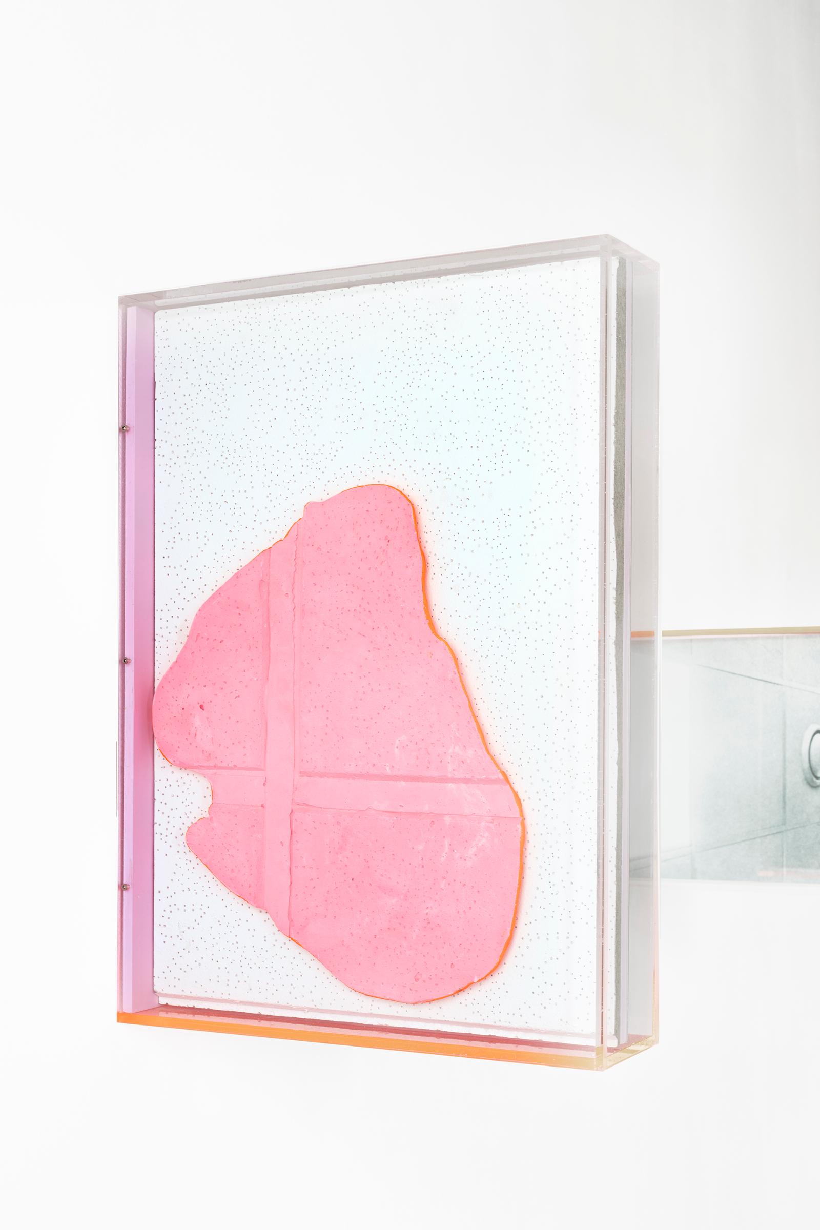 2023. Ultrachromeprints, plaster, silicon rubber, false ceiling, and wood in plexiglass container. 59.0 x 42.0 x 11.5 cm
