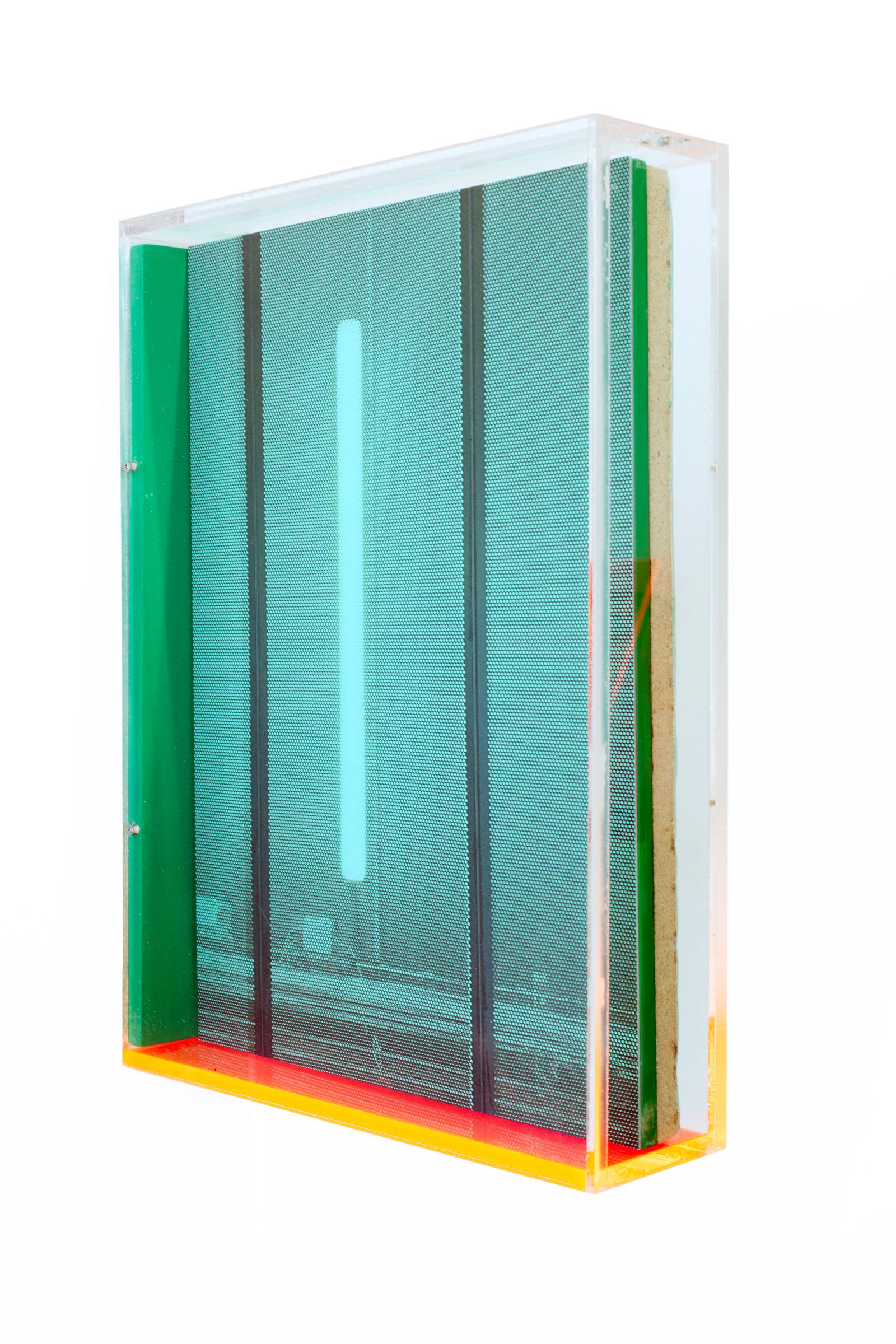 2023. Ultrachromeprints, silicon rubber, false ceiling, and wood in plexiglass container. 42.0 x 32.0 x 9.0 cm