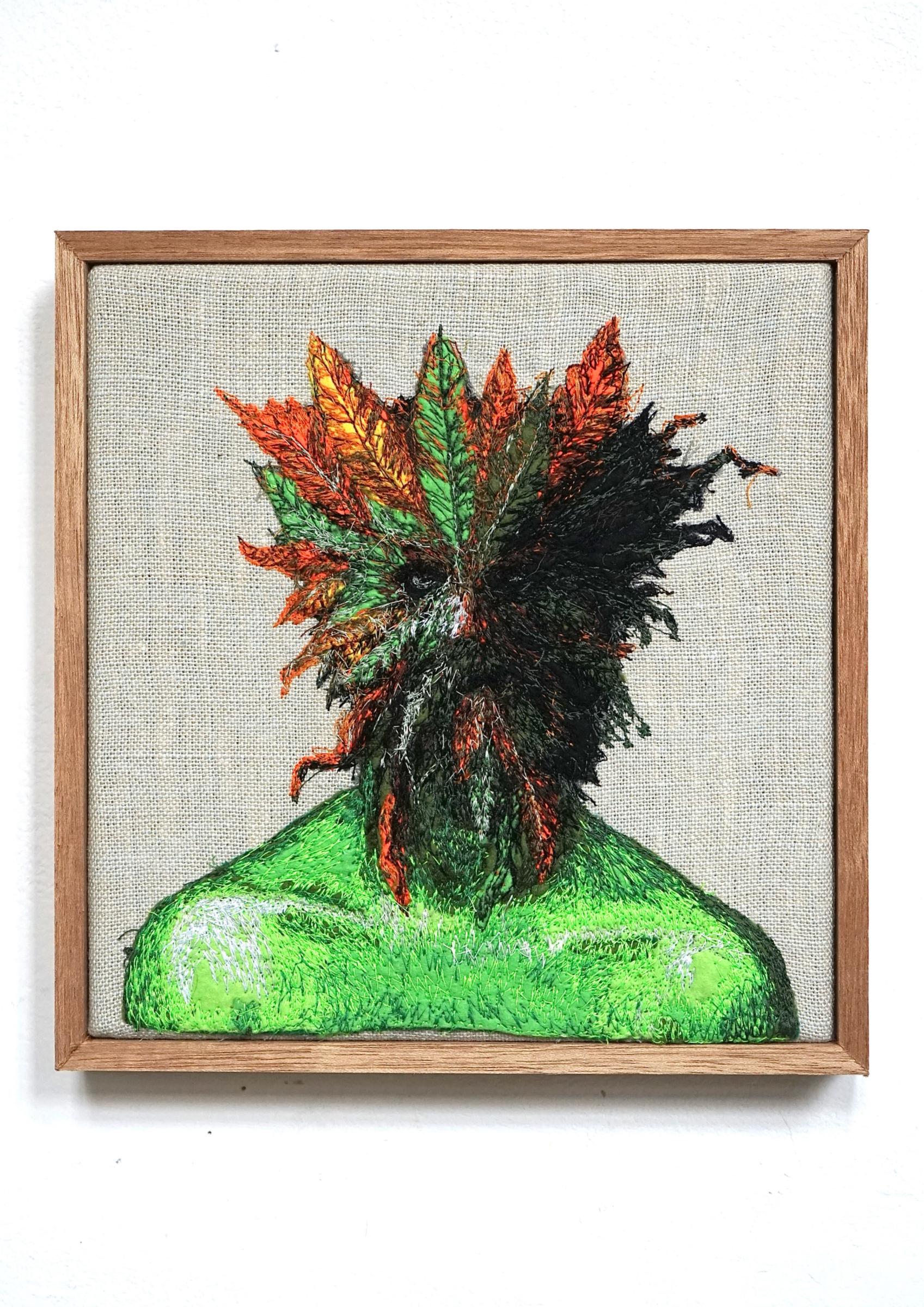 2025. Embroidery and textile appliqué with wooden frame. 26.0 x 25.0 cm