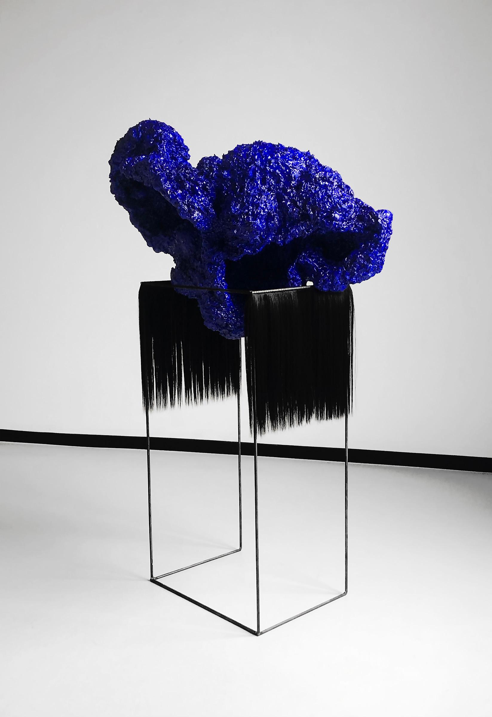 2020. Wire, cotton, wallpaper glue, foam, silicone, acrylic+spray paint synthetic hair, steel, thread. 135.0 x 100.0 x 55.0 cm