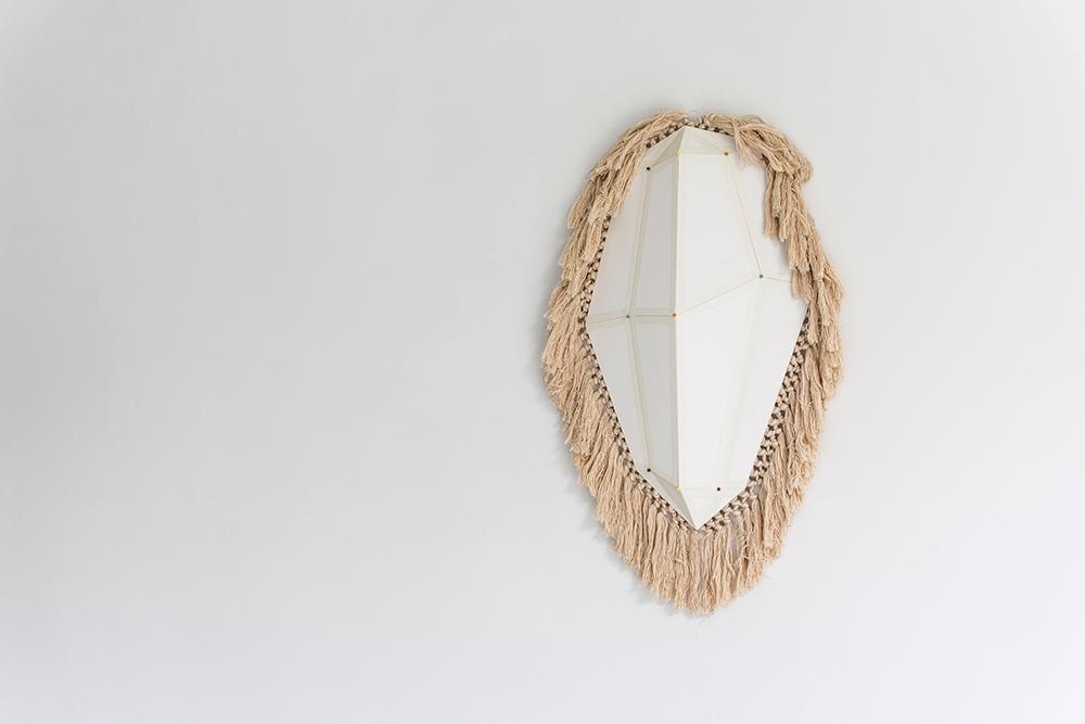 2018. Cardboard, tape, pins and fabric. 60.0 x 36.0 x 7.0 cm